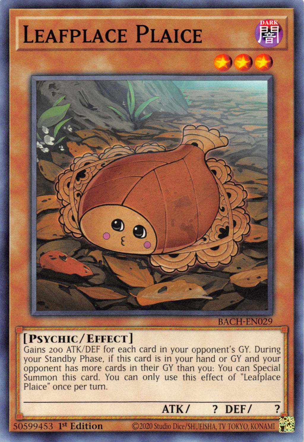 Gains 200 ATK/DEF for each card in your opponent's GY. During your Standby Phase, if this card is in your hand or GY and your opponent has more cards in their GY than you: You can Special Summon this card. You can only use this effect of "Leafplace Plaice" once per turn.